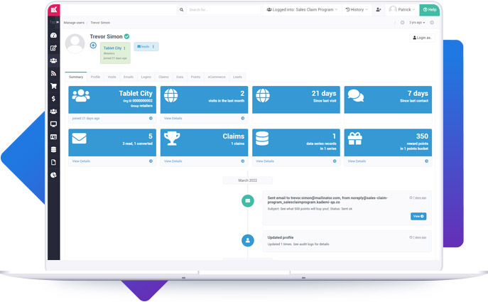 Kademi ensures every partner interaction from the emails they receive and open, the online training courses they complete, and their loyalty points get captured into a single unique view of a customer in real-time.